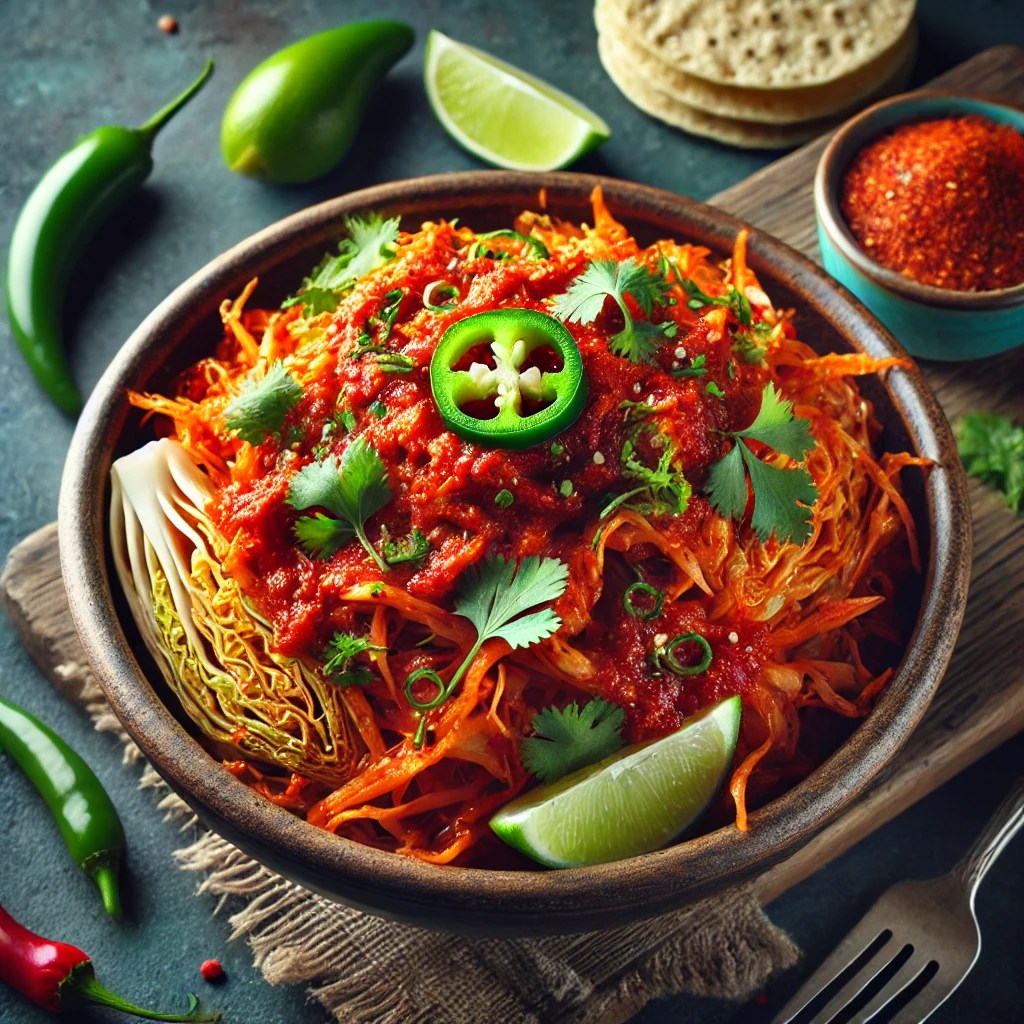 This recipe blends the bold, spicy tang of traditional kimchi with the smoky heat and vibrant citrus notes of Latin cuisine. Expect hints of chipotle, lime, and cilantro for an exciting fusion of flavors.